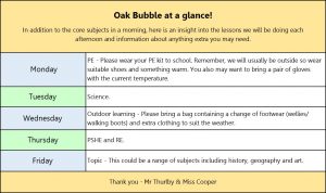 Oak at a glance timetable